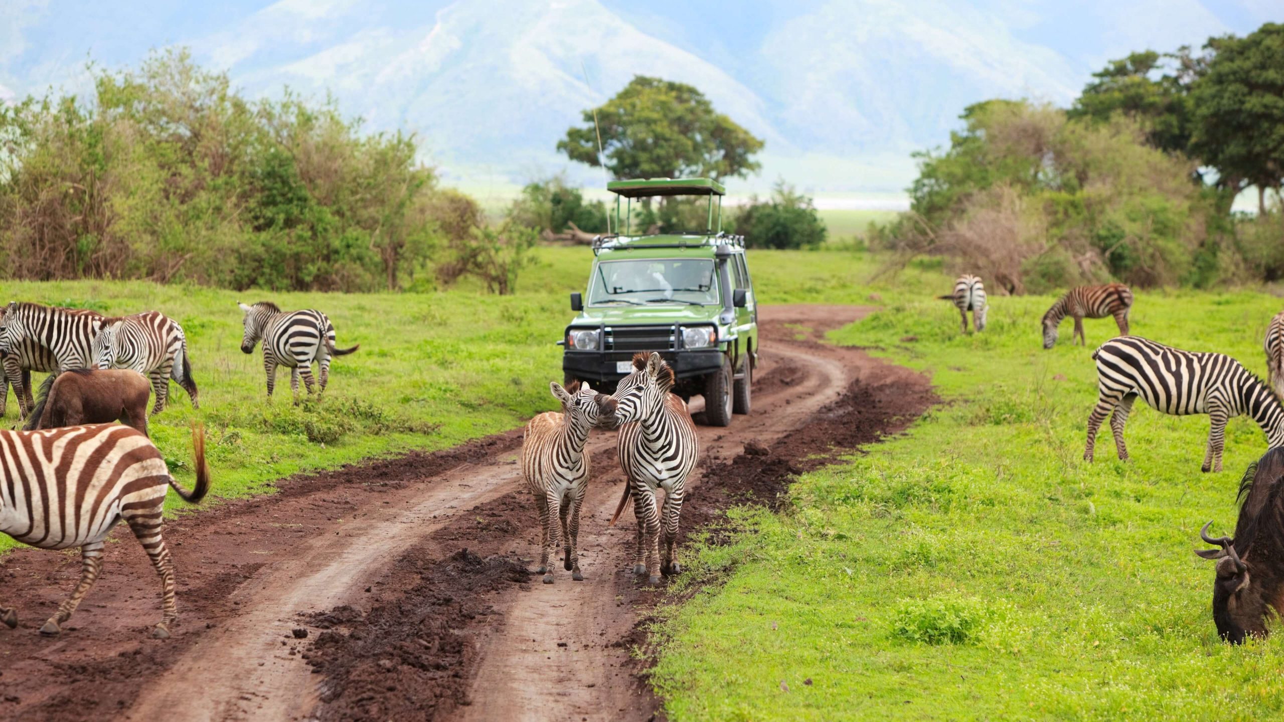 • Transport in safari van with pop up roof and 4×4 JEEP